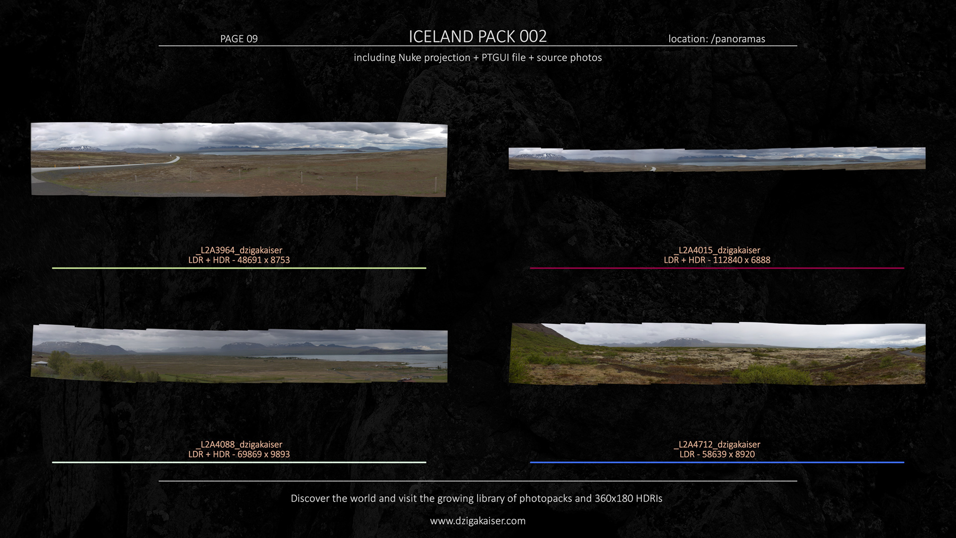 14 HDR panoramas with up to 112k pixel width resolution.